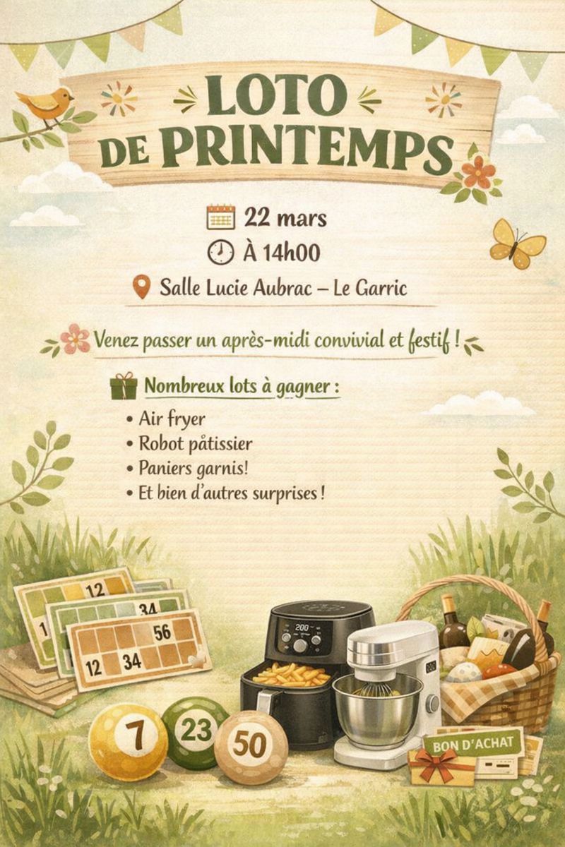 Loto des Amis de Sainte-Martianne Date/heure Date(s) - 22/03/202614h00 Emplacement Espace Lucie Aubrac Catégories Animation